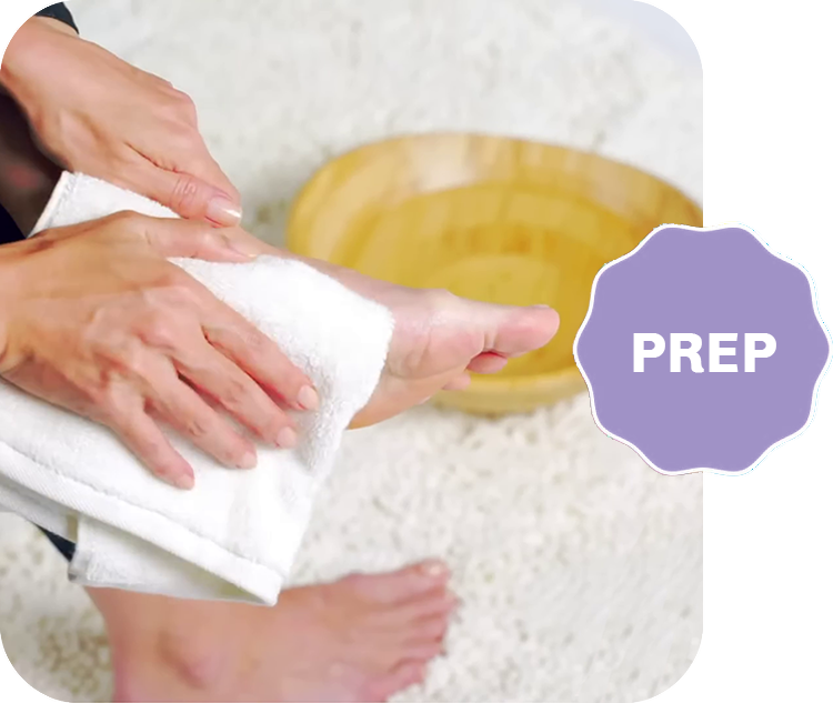 • Prep: Wash feet, then soak in warm water 10–15 minutes; dry well.