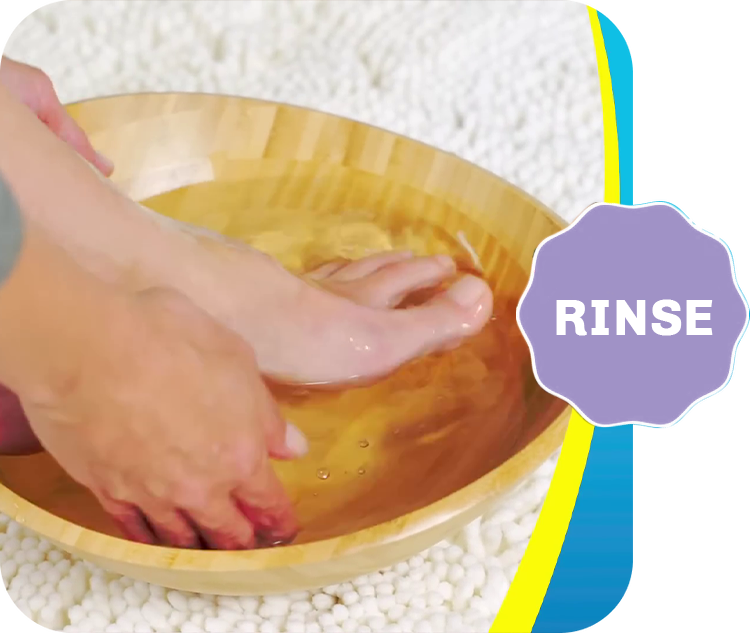 • Rinse: Take them off and rinse feet with water; pat dry.