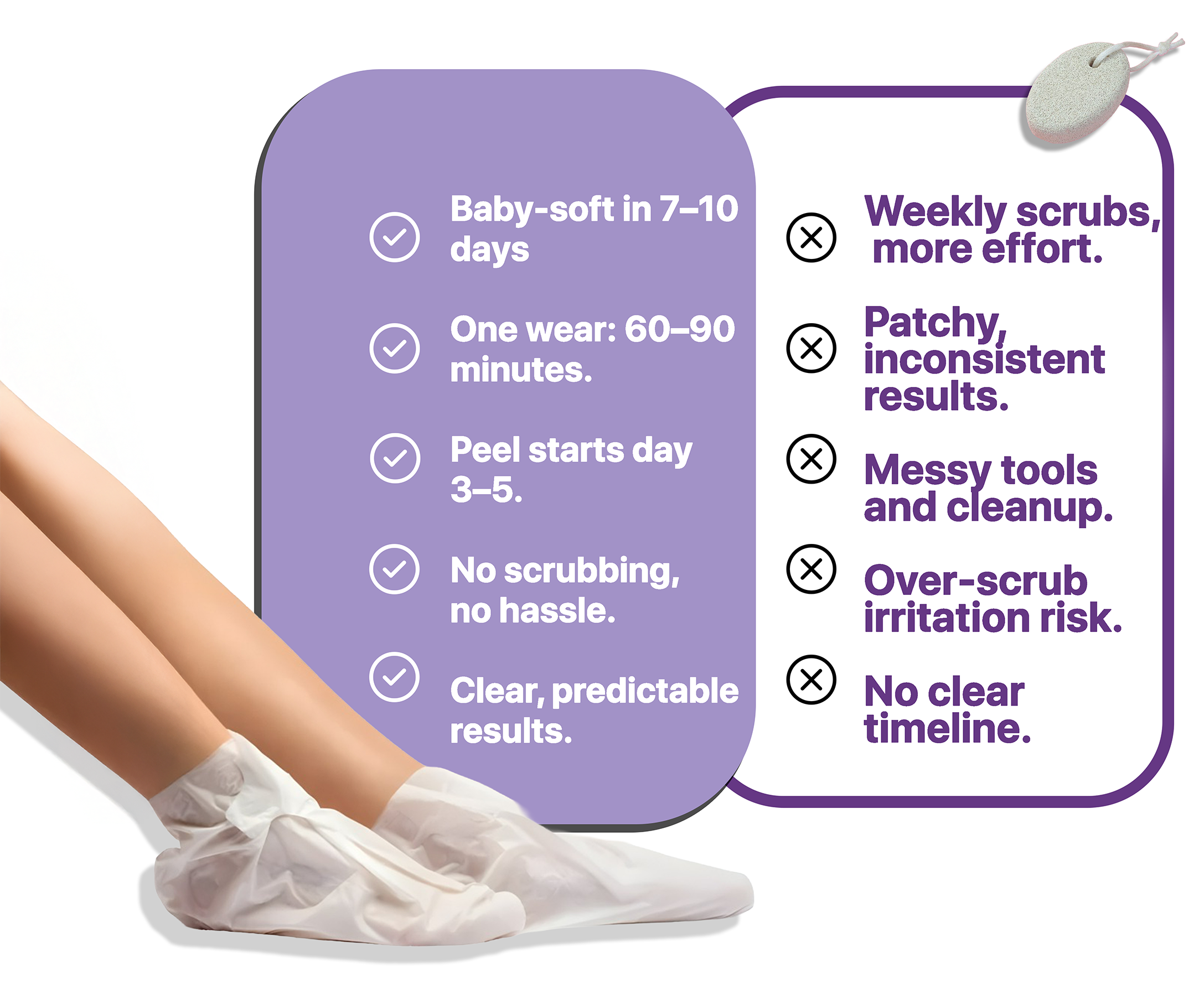 At‑home exfoliating sock mask that reveals baby‑soft feet in 7–10 days.